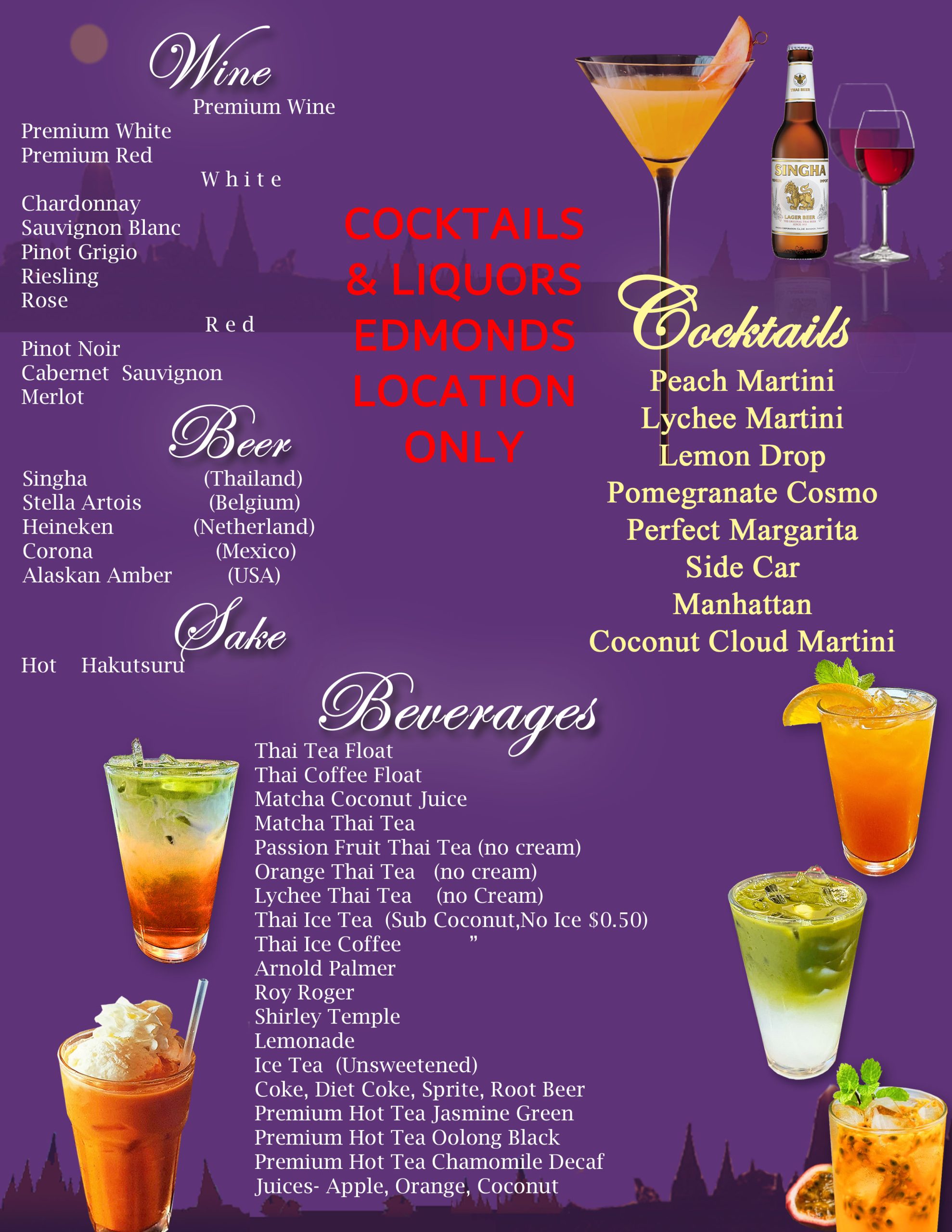 COCKTAILS & LIQUOR AT EDMONDS LOCATION ONLY
